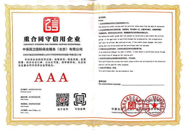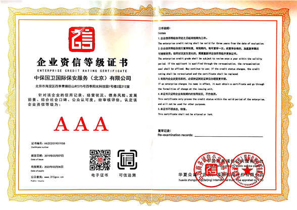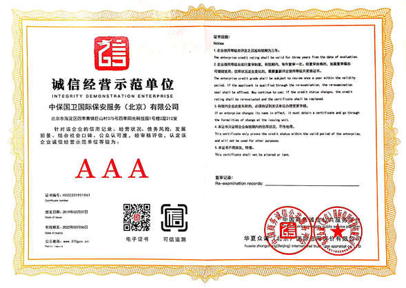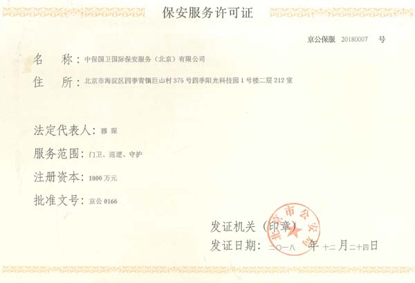 中保國衛(wèi)國際保安服務(北京)有限公司,屬中保國衛(wèi)集團旗下子公司。能全方位的為大型客戶提供優(yōu)質的安保、押運服務,是集人防和技防于一體的新型正規(guī)化綜合安保押運服務企業(yè),提供人防、物防、技防、聯網報*、非武裝押運等安防相關的一站式服務。 公司在國內多省設立有分公司及分支機構,著重提升安全押運、智能技術押運及安全技術防范相關的服務,業(yè)務范圍覆蓋全國一、二線城市、港澳地區(qū)以及海外地區(qū)。安保方面主要為政府機構、金融機構、企事業(yè)單位、醫(yī)療衛(wèi)生、高等院校、工業(yè)園區(qū)、大型商場、高檔住宅、智能商務樓、大型活動提供門衛(wèi)、守護、巡邏、押運(非武裝)、安全檢查、保安特勤、私人護衛(wèi)、消防中控、安全技術防范、遠洋護航等全方位服務,同時面向國際市場,為中資企業(yè)在“一帶一路”沿線國家投資提供境外安保服務。 >> 更多內容 |